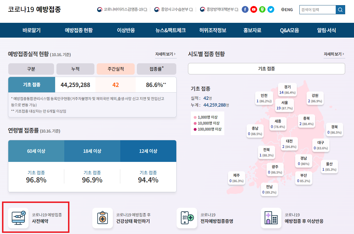 1. 코로나19 예방접종 공인사이트를 우선 방문해주세요.