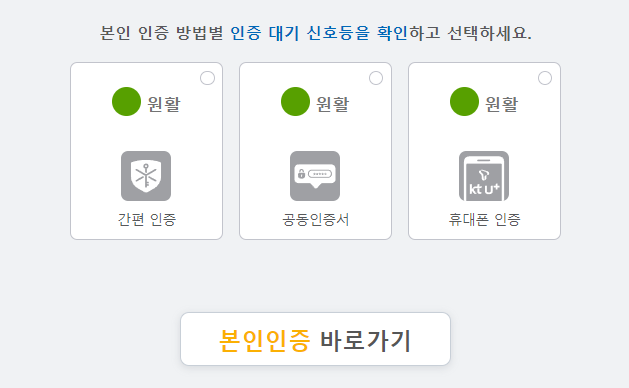 4. 본인인증 방법을 선택하고 인증을 하라는 내용이 나오면 인증을 실시해 줍니다.