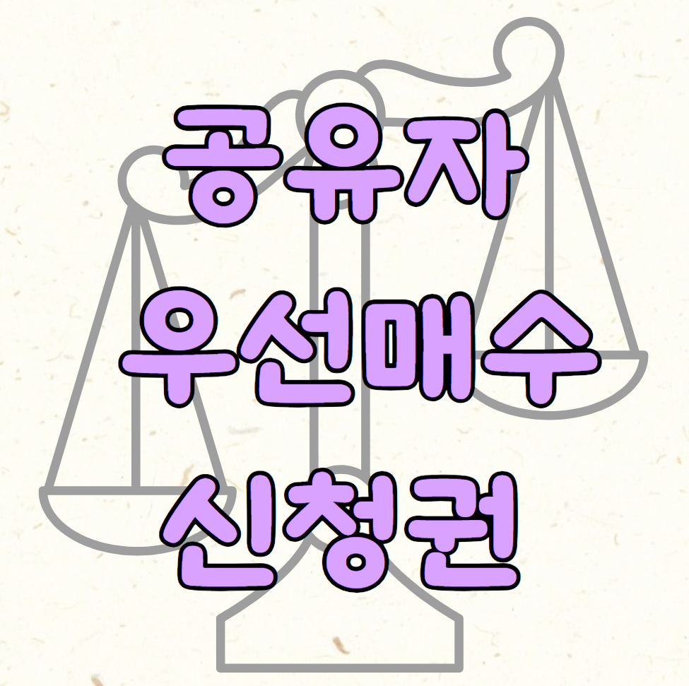 | 신청 방법 | 1) 입찰 기일 이전 신청할 경우 공유자 우선 매수 신청서작성하여 제출(단, 입찰 기일 참석 필수.) 2) 공유자우선매수를 입찰기일 참석해 행사할 경우 현장에서 구두 진술 (현장에서 "공유자우선매수 신청하겠습니다"라고 외쳐요.) |