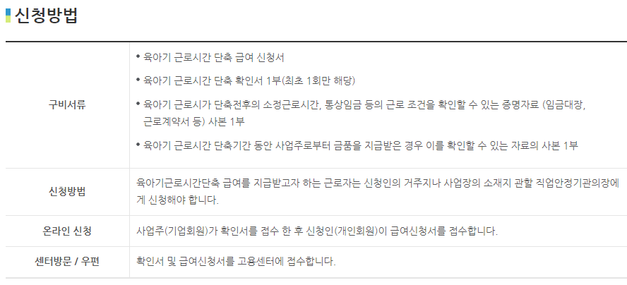 일단, 육아기 근로시간 단축 급여 신청서를 다운로드 받으세요!