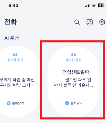 에이닷을 통해 통화가 끝나면 즉시 말풍선이 생기면서 한 줄로 요약해 주는 기능입니다.