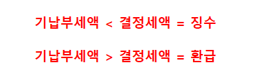 두번째 조건은 기납부세액이 결정세액보다 커야 합니다. 다시 말하면 매월 납부한 세금이 결정된 세액보다 커야 한다는 것입니다.