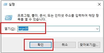 1. [윈도우키+r]을 누르시고 regedit를 입력합니다.