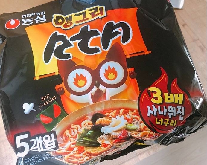 요즘은 매운라면이 대세라서 그런지 앵그리 너구리도 매운맛으로 나왔습니다.