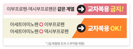 - 이부프로펜과 덱시부프로펜은 동일 계열이므로 교차복용 불가능