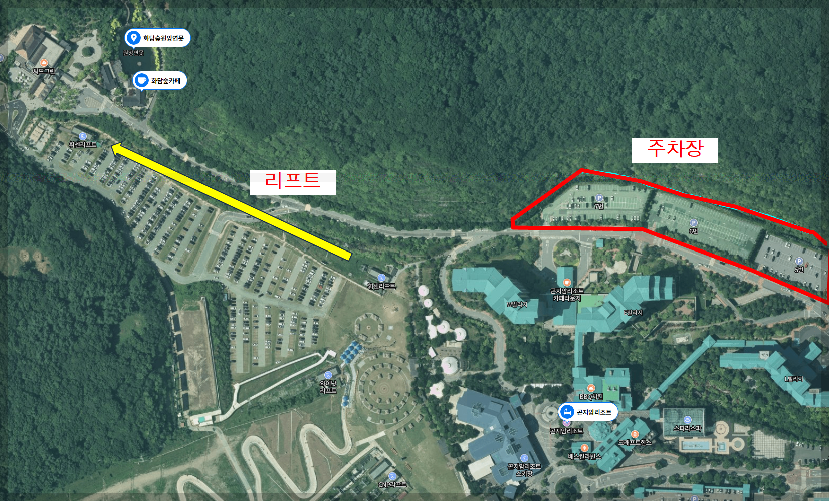 주차 요원이 주차를 안내해주기 때문에 어디로 주차할지 정확히 예측할 수는 없지만, 리프트에 가까운 7번주차장을 찾는 것이 좋습니다.
