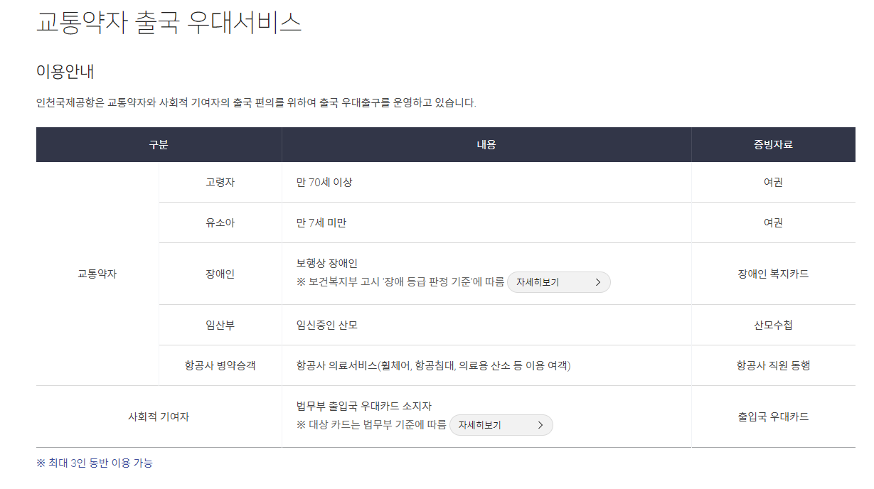 - 내용: 출국 우대서비스 이용 가능 (최대 3인 동반)