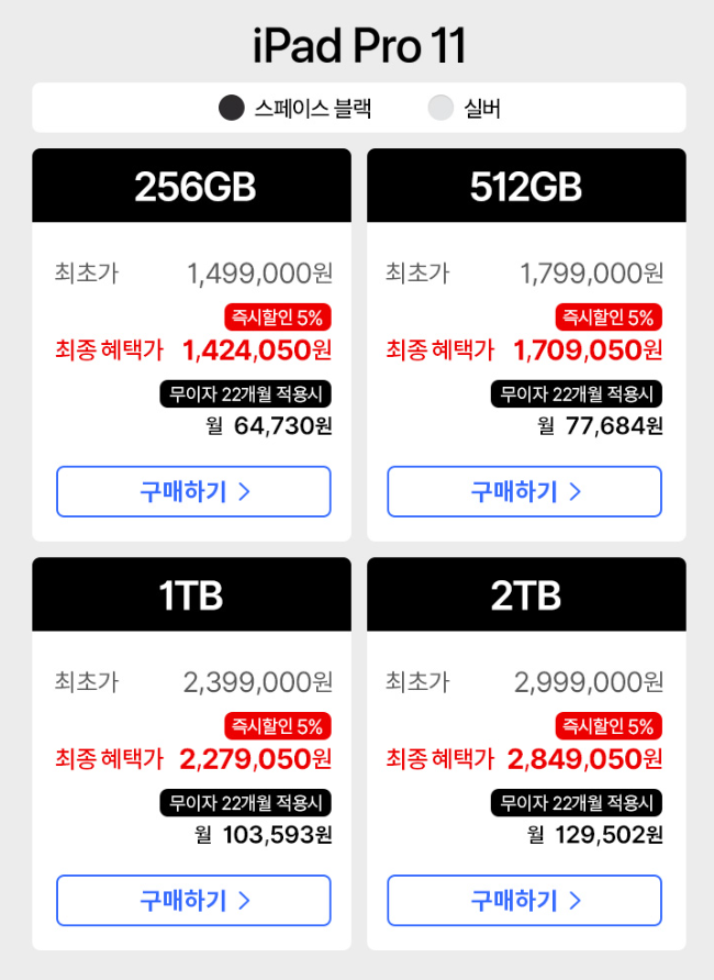 - 아이패드프로 11인치: 1,499,000원