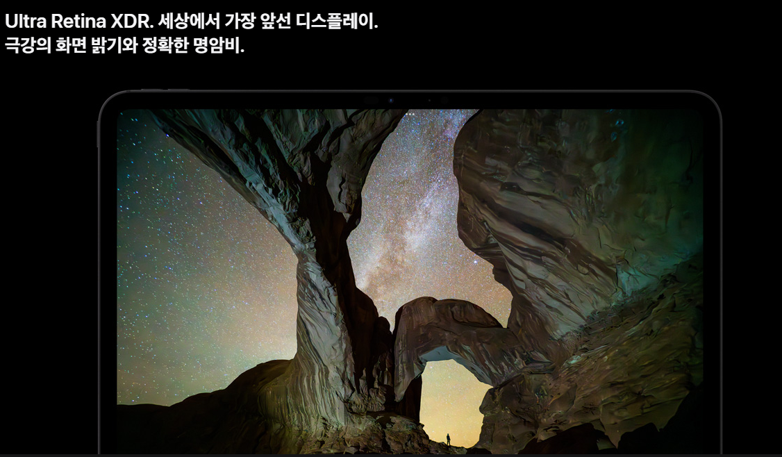 새로운 Ultra Retina XDR 디스플레이에 탠덤 OLED 기술이 적용되어 평범한 OLED 디스플레이를 뛰어넘는 화질을 자랑합니다.