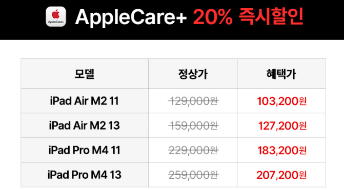 아이패드 프로 M4 애플케어플러스 혜택까지