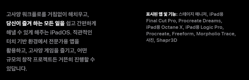 새로운 성능과 함께 iPadOS 16과 높은 수준의 앱 환경도 iPad Pro의 활용도를 크게 높였습니다.