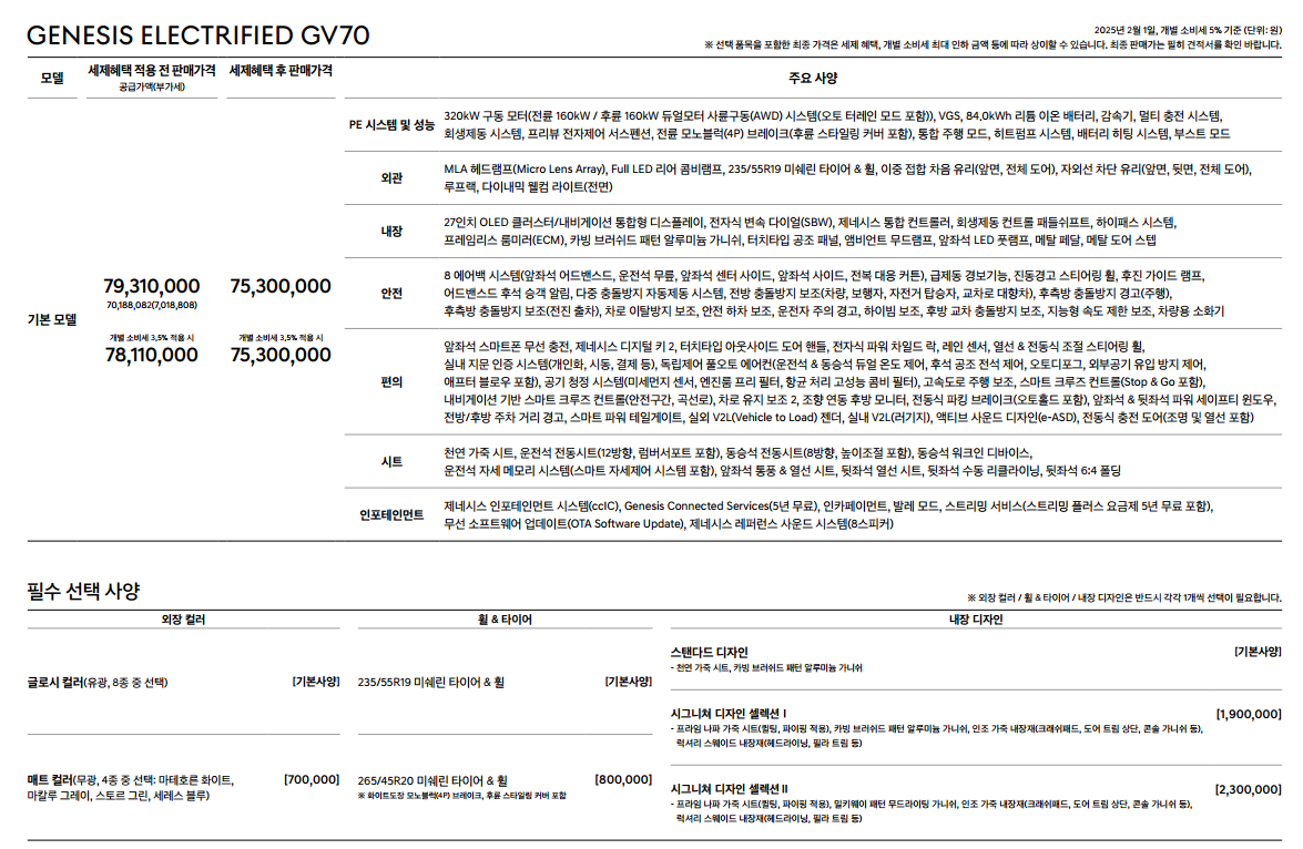2. 2025 GV70 전기차 가격
