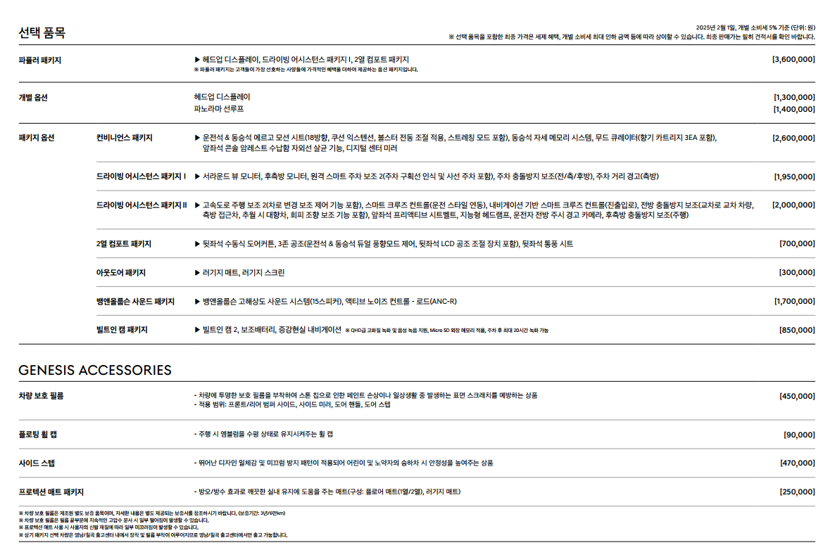 3. 2025 GV70 전기차 옵션 종류와 가격