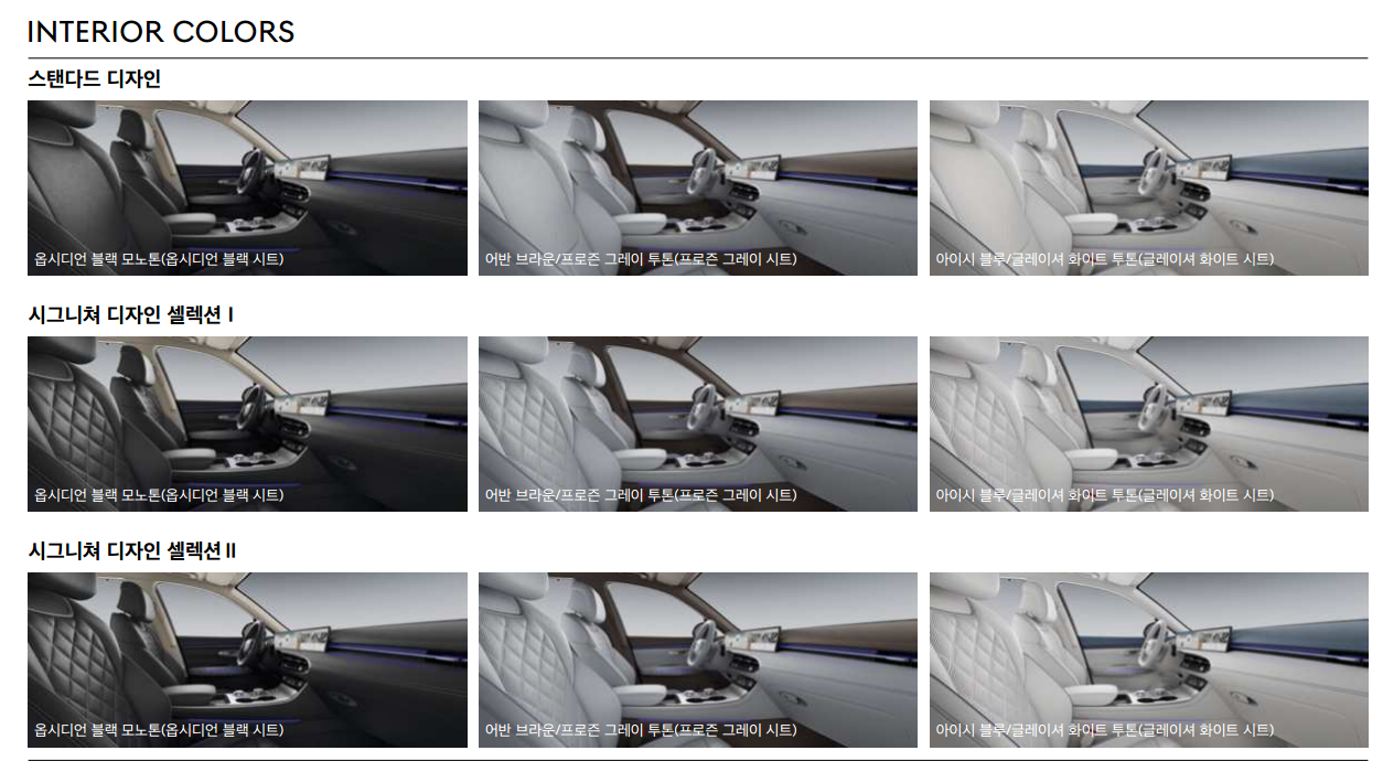 내장 색상의 경우, ‘시그니처 I’와 ‘시그니처 II’ 등급이 있으며 상위 등급일수록 패턴과 무드라이팅이 추가됩니다.