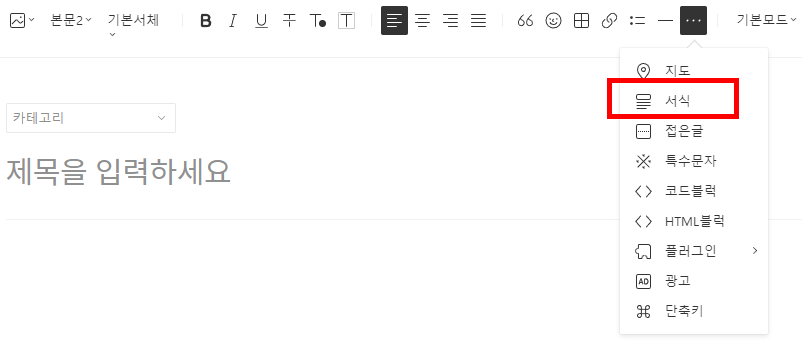 그리고 메뉴 중에 "점점점"을 눌러주시고 서식에 들어가 보세요.