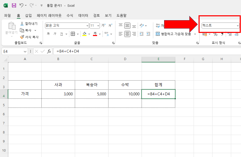 텍스트로 되어 있다면 일반으로 변경하시고 다시 진행해 보세요!