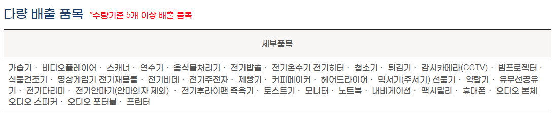 수거 불가능한 폐가전제품 품목