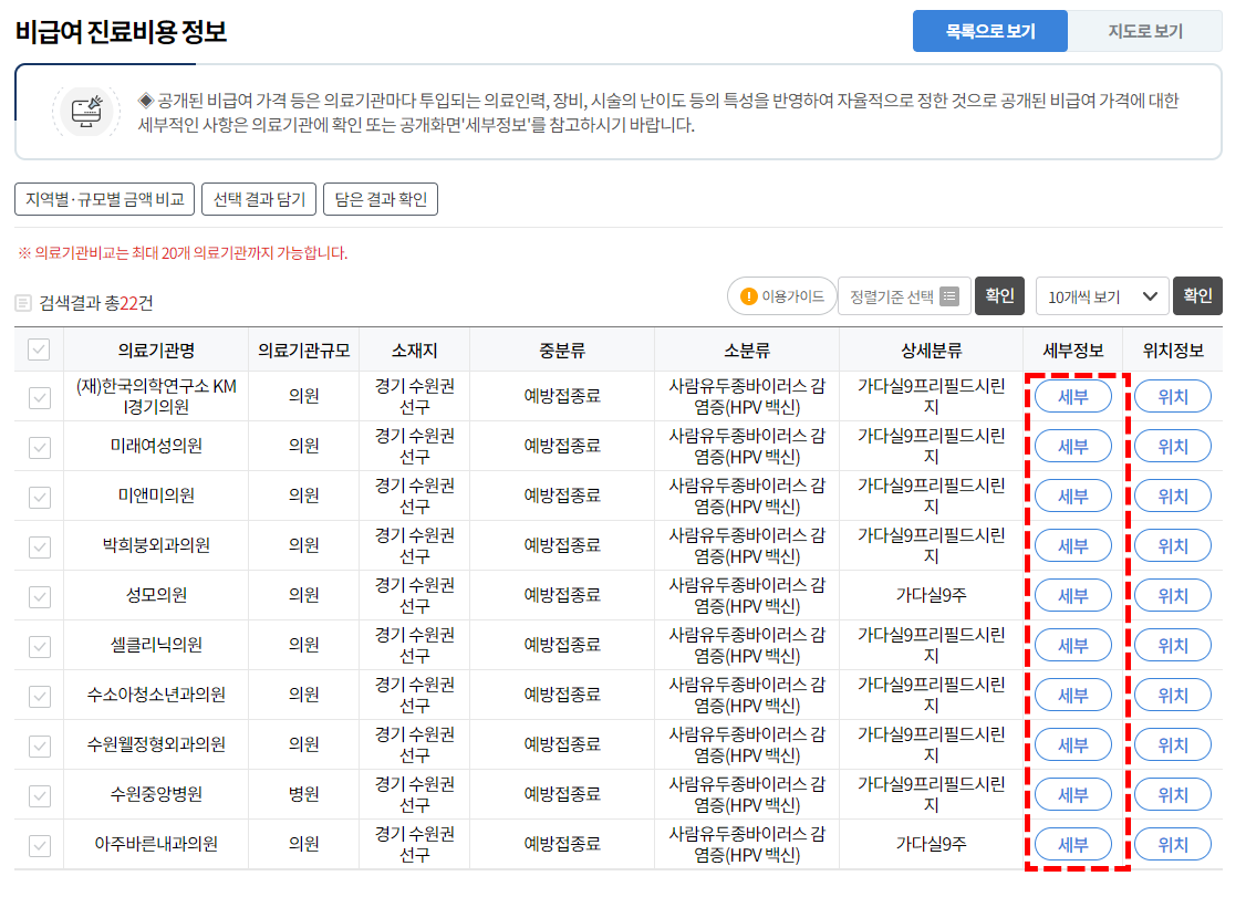 가다실9가 병원 가격 확인 방법